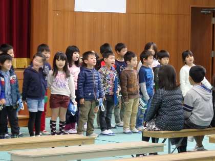 リハーサル中のようすです。とびっきりの笑顔と元気な歌で「かっこいいお兄さん,お姉さんだなぁ」と思ってもらえるように頑張ります!