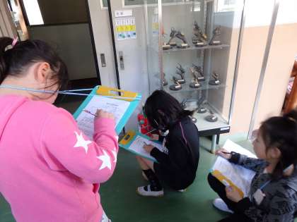 校長室前や下駄箱の近くなど,普段よく通る場所でも,意外とどこにあるのか気付かないことがあります。改めて場所を確認して回って「こんな所にもあったんや!」と気付くこともあったようです。これで,いざという時にもすぐに,行動にうつすことができそうです。