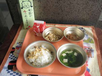ごはん・牛乳・たけのこごはん(具)・平天の煮つけ・すまし汁