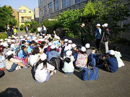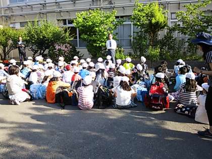 快晴のもと,6年生72名が一人の欠席者もなく全員で元気に修学旅行に出発しました。出発式では代表児童が立派にあいさつを述べていました。お見送りの方々,ありがとうございました。