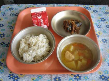 本日の給食では「さばのしょうが煮」でした。給食室の大きな釜でじっくりと煮ました。一年生はおはしで骨をとるのに時間がかかっていましたが、しっかりと食べる事ができていました。