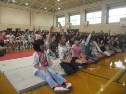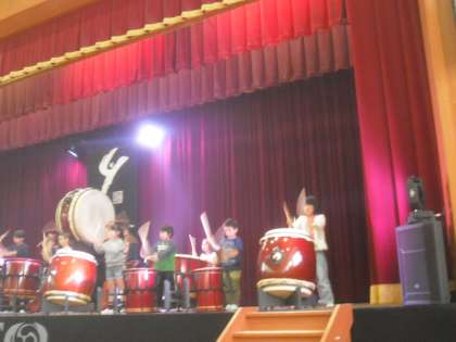 鑑賞教室がありました。奈良県から和太鼓のグループ「倭(やまと)」さんにきていただき迫力あるパフォーマンスを鑑賞しました。体験教室もあり、Nさんが舞台にあがりました。