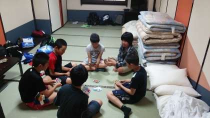 朝のひとときを使って 布団を片付けたり班での交流をしたり 朝食の前のほっこりタイムです♪ 寸暇を惜しんでトランプをしているグループもあるようですね。