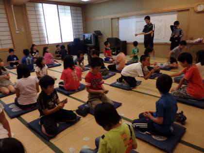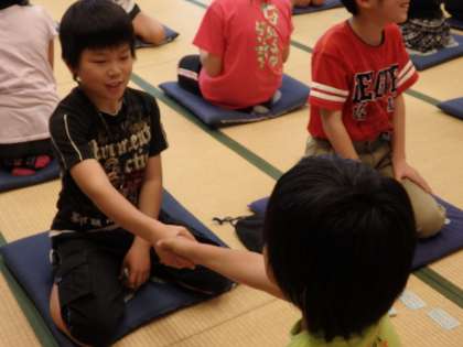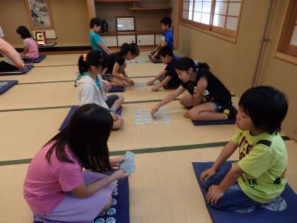 ふれあいサロンで百人一首大会をしました。最近,5年生は朝の時間にみんなで百人一首に取り組んでいます。今日はいつもと違った畳の部屋で,少し本格的な気分です。