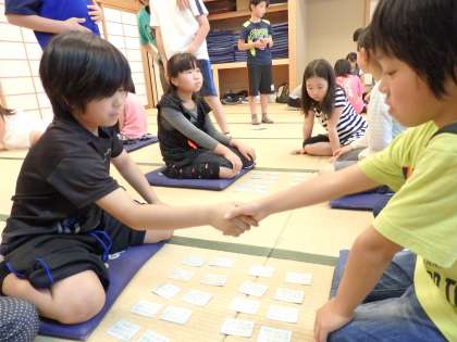 3位決定戦と決勝戦のようすです。どちらもとても白熱した試合になりました。優勝した児童には,金のカードが贈られました。来週からは,百人一首の句を別の組み合わせに変えようと思います。また次の組み合わせの句も,頑張って覚えて百人一首を楽しんで欲しいと思います!