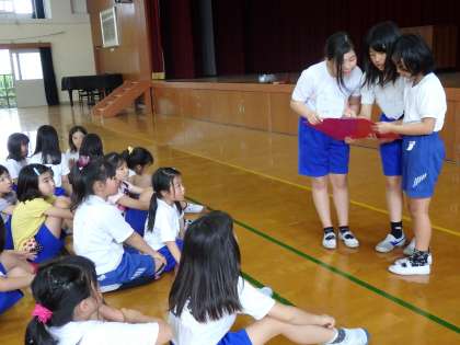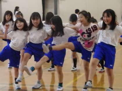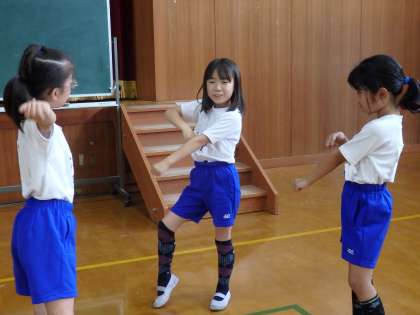 ダンスは5年生が中心になって,曲の最後の方の振付を教えてくれました。曲の最後はカッコいい振りが入り,3年生にとってはなかなか難しいのですが,上の学年の子たちを見ながら一生懸命練習をしていました。今日はラインダンスも少しだけ練習し,半分ずつに分かれて楽しく踊りました。