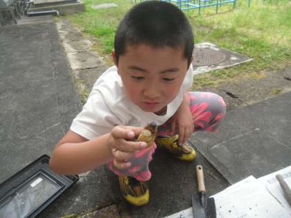 去年、今の5年生のKさんから4組にカブトの幼虫をもらいました。4組が生き物大好きクラスだと思って持ってきてくれたのです。去年飼育していたカブトは4年間同じケージで育てていた子孫で、血が濃いからか奇形だったり短命だったり折角産んだ卵も孵らなかったりで幼虫には育たなかったのでした。「来年はカブトの飼育を諦めるか、どこかまで捕獲に行くしかないなぁ…」と話していた矢先、Kさんが持ってきてくれたのでした。