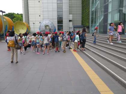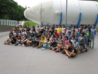 科学館の見学が終わった班からグループ写真を撮り,学年写真を撮って出発しました。