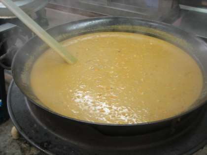 手作りの「ルー」はもちろん、たくさんの調味料(塩・こしょう・ガーリックパウダー・オールスパイス・カレー粉・脱脂粉乳・バター・チーズ・ヨーグルト・バーベキューソース・トマトピューレ・フルーツチャツネ・ウスターソース・しょう油・ローリエ)が入り、じっくりコトコト大きなお釜で煮込みました。
