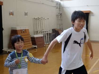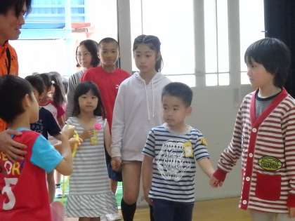 1年生〜6年生が一堂に会するのは今日が初めてです。1年生は少し緊張したようすで,6年生と手をつないで入場をしました。