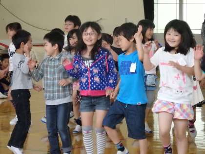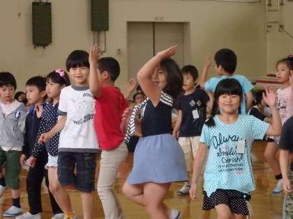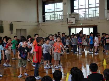 トップバッターは2年生です。『なんとなくちょっとハッピーステップ』を2年生風にアレンジして,楽しく歌って踊ってくれました。