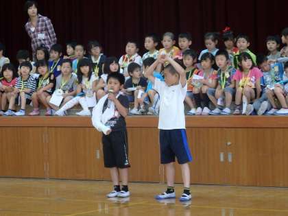 最後の出し物は運営委員会からの『〇×クイズ』です。全学年参加で,楽しく盛り上がりました。