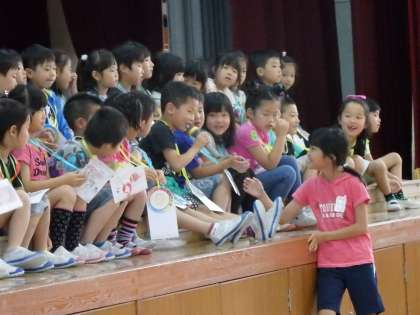 色々な学年の出し物を見ている子どもたちの様子です。どの学年の出し物もとても工夫されていて,見ている子どもたちもとても楽しそうでした。
