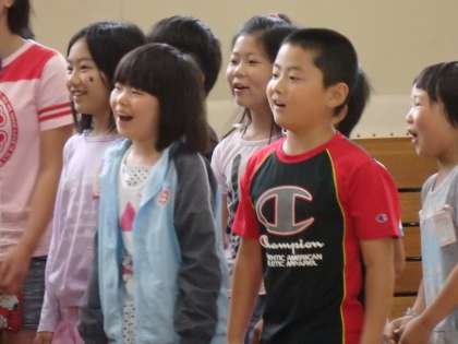 4組のIさんとNさんは,交流学年の4年生と5年生に参加して,出し物を披露しました。Iさんは『プパポ』をリズムにのって笑顔でいました。Nさんは「『あったかいんだからぁ〜』をするのは恥ずかしかったけど頑張った」と笑顔で話していました。