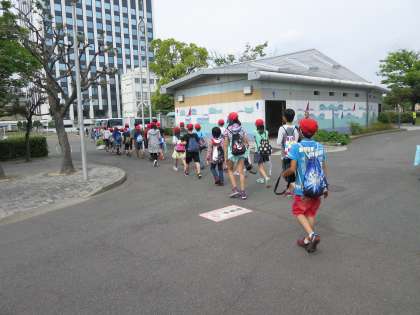 最後まできちんと並んで歩こうと声をかけました。一番きれいに並べていたクラスです。