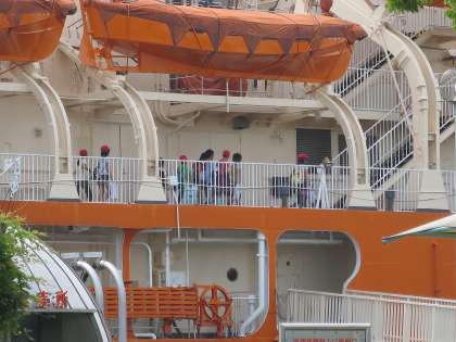 南極観測船ふじに向かうところや,その近くの様子です。2