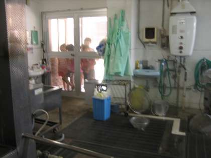外で子どもたちが学習していましたが、その香りにつられて、給食室を覗いていました。