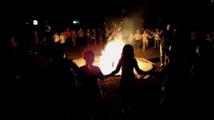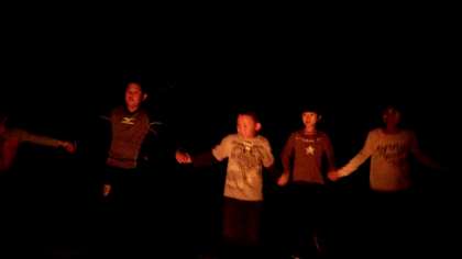 1日目の夜のキャンプファイヤーの様子です。この日に向けて,学校でもゲームやスタンツ,ダンスや司会進行などをずいぶん練習してきました。炎を中心にして,友情も深まったことでしょう。