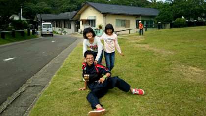 芝生広場のみんなの様子です。ボランティアさんと鬼ごっこをしたりして遊んでいます。みさき丸に乗ったりして遊んでいる子もいます。