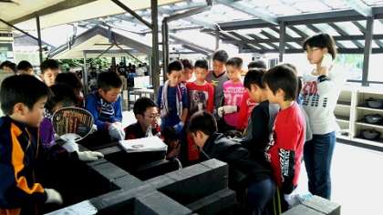いよいよ野外炊事が始まりました。係りに分かれて「すき焼き風煮」を作ります!美味しく作れるかな?