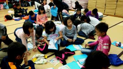 2日目の反省会の様子です。今日も班でリーダーを中心に話し合います。反省会の後はちょっと休憩タイムでした。