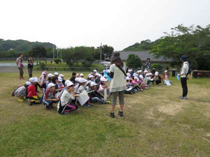 所内ラリーをするために,「あずまや」前の芝生に集合です。