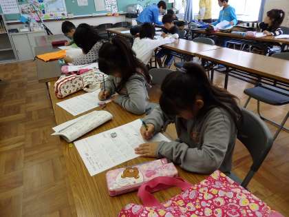 学習しているのは算数です。今までに習った復習の問題をして,しっかりと定着するようにします。今日もとても真剣なようすで学習に励んでいました。