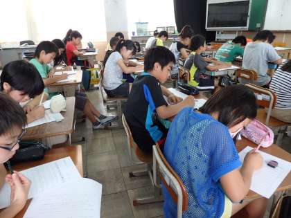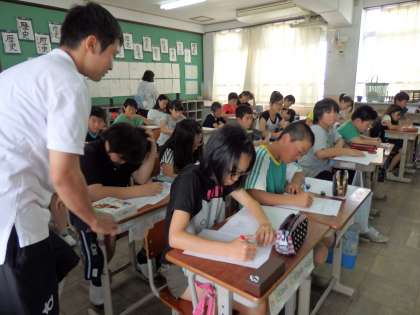 サッカー選手の話を聞き,憧れの人や自分たちの夢について考えます。みんなとても真剣な様子です。