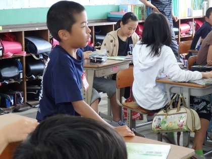 2組は道徳の授業でした。「祈りの手」の絵を見て,自分たちの考えや経験を発表していました。