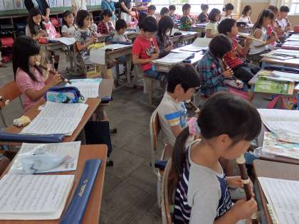 3年生の1時間目は音楽の授業です。1組はちょうどリコーダーをしているところでした。習いたてのリコーダーですが,きれいなメロディで曲を演奏できていました。