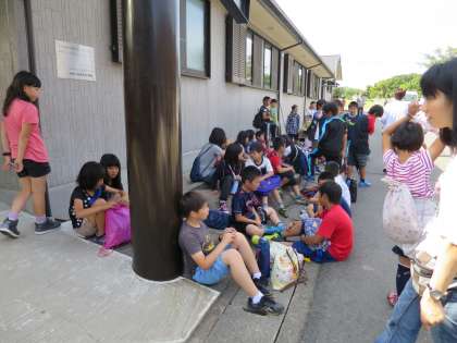 そうじが終わった子どもたちから,退所式に行くために集まってきました。