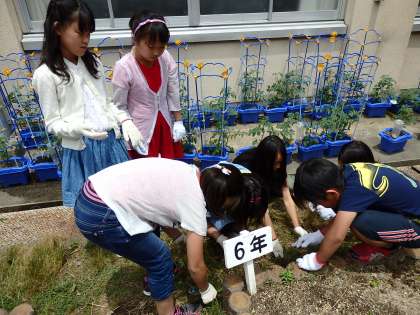 日曜参観の4時間目は一斉に校内清掃をしました。教室や体育館など,普段から掃除をしているところだけではなく,ちびっこ広場や花壇・みどりの広場の雑草抜きも行いました。