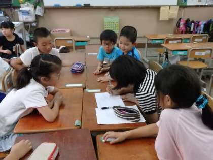先週の水曜日,なかよし集会がありました。なかよし集会はたてわり活動で,各学年1〜2人ずつ集まった班で,一緒に遊んだり活動をしたりします。今回が初めての活動でした。