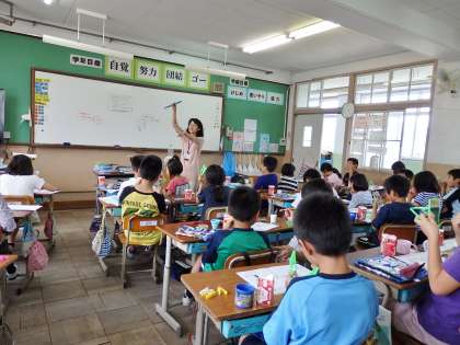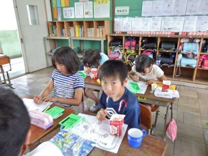 チェックが終わると,養護の先生と一緒に上手に歯を磨く練習をします。歯の溝に合わせて,歯ブラシを寝かせたり,立てたり,向きを変えたりしながら,赤くなった部分を丁寧に磨いていきました。