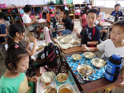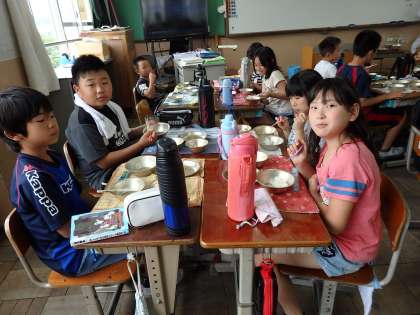 4年生のようすです。お箸を上手に使って,ご飯を食べていました。