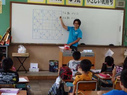 数独の問題はなかなか難しい!「ここに1があるから,ここはあかんなぁ」など,みんなそれぞれ考えを呟きながら,マスを埋めていきました。