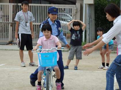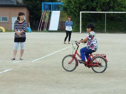 みんな安全に気を付けてしっかりとペダルを踏みしめます。今日は運動場で安全について学びましたが,道路では急いでる車や狭い道など環境も様々です。外の道では特によく安全に気を付けて,自分の身を守っていってほしいと思います。お家でも,安全についてぜひお子さんとお話ください。