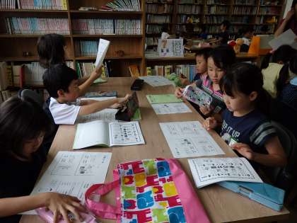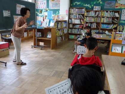 昨日,毎週水曜日に来てくださっている先生の特別授業がありました。今週から始まっている「あじさい読書週間」の取組の1つです。昨日は1〜3年生と4組,来週の水曜日には4〜6年で授業をしてくださいます。写真は3年生のようすです。