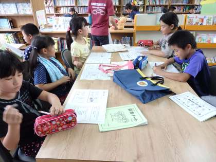 授業の内容は「図書館の使い方講座」や「おすすめの本紹介」など,学年・クラスによって様々です。3年生は図書館の本の分類について学びました。