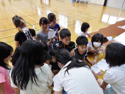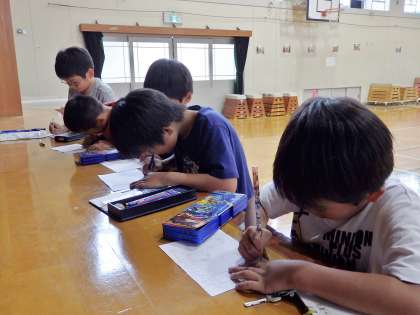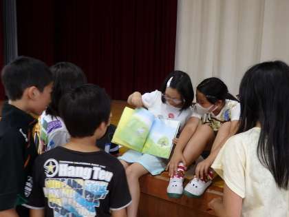 本の読み聞かせのコーナーです。読み聞かせコーナー担当の図書委員さんは,たくさんの子の中でみんなにお話が聞こえるように一生懸命本を読んでくれました。