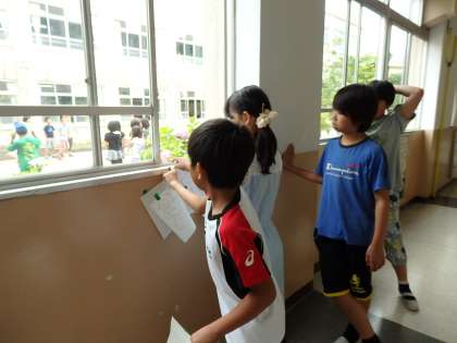 今日からあじさい読書週間,図書委員さんのもう一つの企画「クイズ大会」が始まります。学校中に貼られた図書館に関するクイズを,クラスで協力して解いてもらう大会です。正解の多かったクラスは表彰されます!どのクラスも優勝目指して頑張ってほしいと思います。
