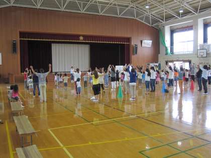 準備体操の後、色別に分かれたチームで対戦しました。予選、敗者復活戦、決勝戦と楽しみつつ、熱心に行われました。