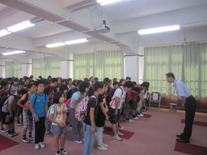 少し緊張気味ですが,スチューデントシティ学習での約束やめあてを聞いて,準備をしています。,スチューデントシティでは,言葉づかい,あいさつ,時間を守ること,3つの約束を守って学習します。