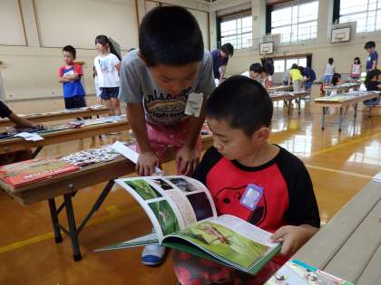 4組の子たちも自分たちの好きな種類の本を見つけると,とても嬉しそうです。夢中になって読んでいました。