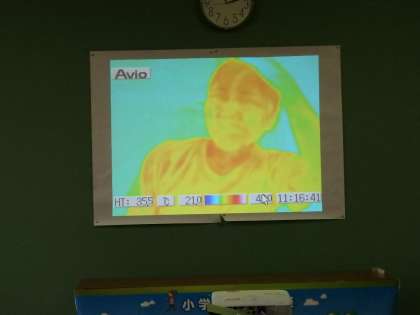 実験結果はご覧のとおり!少し運動をしただけで,違いがはっきりと分かるくらい体が熱を持っていました。先生は「運動すると,これほど体温が上がるんですよ」と話されて,運動時に水分や休憩が十分に必要な理由を話されました。実験に協力してくれたみんな,お疲れ様でした!