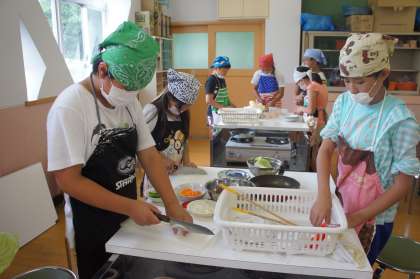 みんなで協力して上手に切ったり炒めたりしていました。