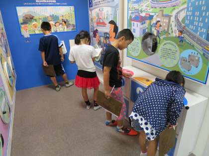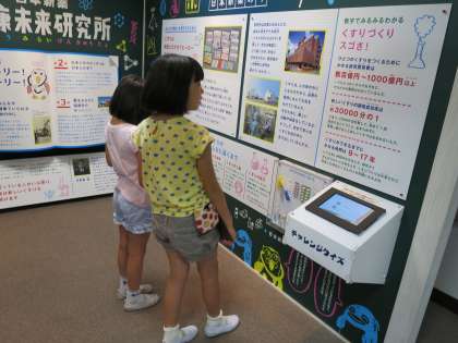 青いベストを着た方は,京都で長年ものづくりをしてこられた方です。子どもたちの質問に答えたり,説明したりしてくださっています。