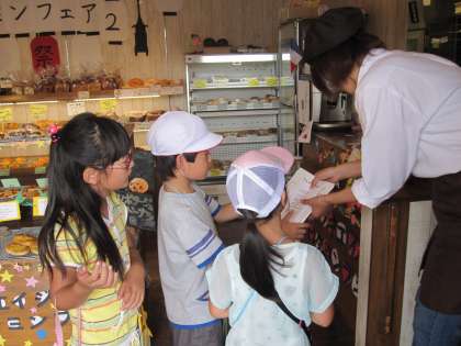 グループは、クラス関係なく、行きたい場所ごとに集まって作りました。考えてきた質問をして、自分たちで安全に学校まで帰りました。このグループは、パン屋さんに行きました。