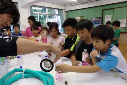 火曜日にあったクラブ活動で,科学クラブでは砂時計ならぬ「スライム時計」を作りました。ホウ砂を溶かした水と洗濯のり,水を加えて作ります。微妙な加減によってドロドロになったり,サラサラになったり……中には大きな塊ができてしまう子も!同じ材料で同じように作っているつもりでも,それぞれ個性豊かなスライムになりました。