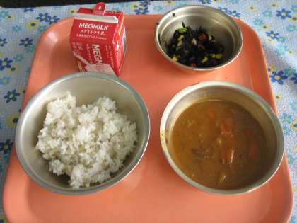 本日はみんなが大好きな「カレー」でした。ごはんにかけて頂きました。